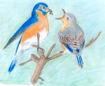 I had also been working on a painting of blue birds to go with the gift. I tried it in various medium and liked the results I got with water colour pencils, gouache and soft pastels the best. I was very anxious to know how my friend felt about the gift, so I was relieved that she and her husband-to-be seemed so delighted with it. It was an enjoyable project to do and I would do something like it again. I’m thinking of maybe making my three grandchildren treasure boxes with their names on them the same way. I love having crafting projects.